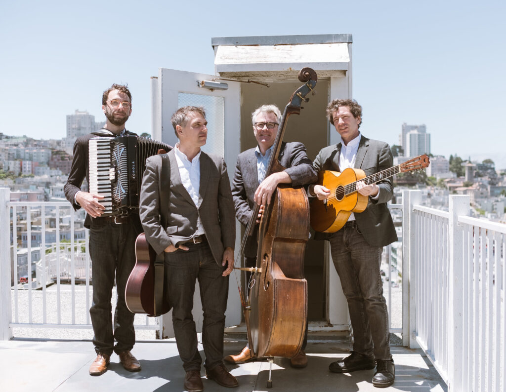 Bask in the delightful live music of celebrated Bay Area quartet Gaucho Jazz, who combine the influence of the gypsy jazz of 1930’s Europe with the rhythmic drive and collective improvisation of New Orleans swing music, gutbucket blues and ragtime. Come find out why the San Francisco Chronicle called these energetic virtuosos “the hardest working Gypsy Jazz Band in San Francisco.”